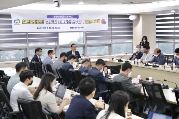 [Ytv영상스토리] 천안시는 지난 23일 시청 중회의실에서 ‘천안성환 종축장부지 첨단국가산업단지 지정 및 운영방안 연구용역 중간보고회’를 개최했다.