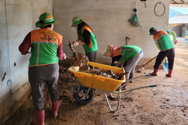 방재단원들은 장비 작업과 수작업이 필요한 농경지와 시설하우스 복구, 농경지를 덮은 토사와 위험 수목을 제거하고 배수 작업을 진행, 수해로 망연자실해 있던 주민들에게 희망을 불어넣었다.