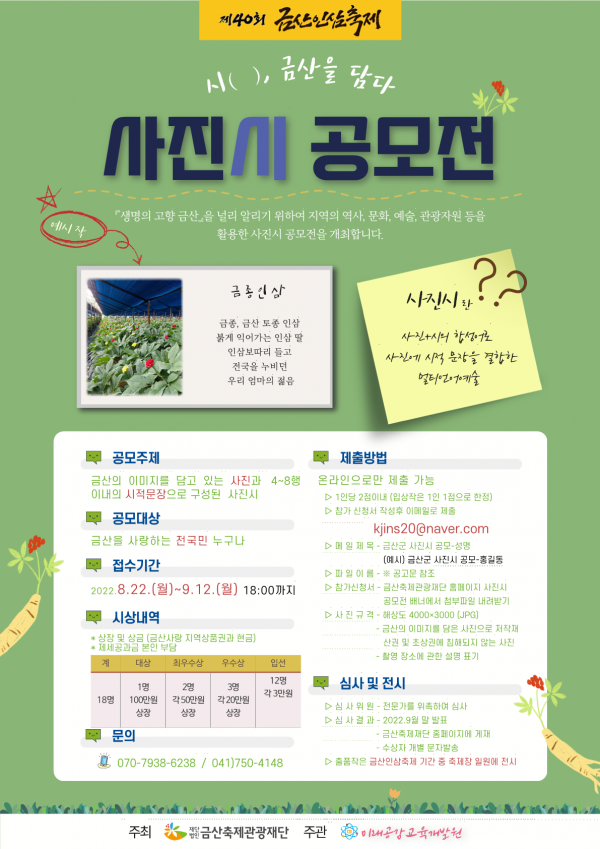 금산군, 제40회 금산인삼축제 기념 사진시 공모전 개최