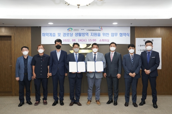 [Ytv영상스토리] 천안시는 방역 취약계층과 관내 경로당에 생활 방역 지원 서비스를 제공하기 위해 지난 24일 시청 소회의실에서 두리장애인복지회와 업무협약을 재체결했다.