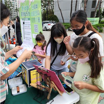 또, 아산시설관리공단 지원으로 기준에 맞게 분리 배출된 투명페트병 크기 및 개수에 따라 종량제봉투 5L로 교환해주는 행사도 진행했다.