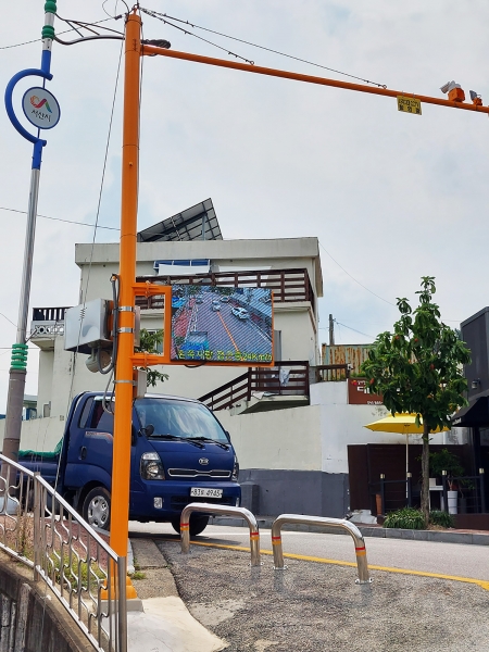 스마트 교통안전 시스템은 교차로에서 운전자가 볼 수 없는 사각지대 화면을 LED 패널에 표출해 교통사고를 방지하는 시스템이다.
