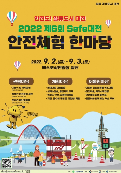 [Ytv영상스토리] 대전시는 9월 2일 금요일 오후 2시부터 9월 3일 토요일 오후 5시까지 2일 동안 엑스포시민광장 일원에서‘제6회 세이프대전 안전체험 한마당’을 개최한다고 밝혔다.