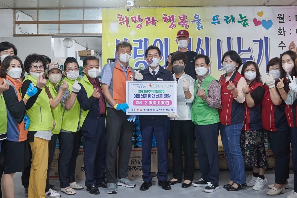 이날 20여 년간 무료 경로식당을 운영하고 매년 명절 나눔에 동참하는 등 지역사회에 꾸준히 온기를 전하고 있는 나눔과 기쁨, 따사모 봉사단, 아산시번영회, 아산상록회, 해피데이 5개 단체가 물품 준비와 포장, 대상자 가정 방문까지 진행하며 소외계층 결식 우려 어르신 가정에 선물을 전달했다.
