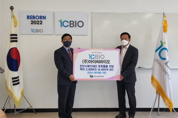 [Ytv영상스토리] 천안시와 천안시복지재단은 지난 8일 입장면 소재 주식회사 아이씨바이오가 취약계층 지원을 위한 백미 2,000kg을 기부했다고 밝혔다.