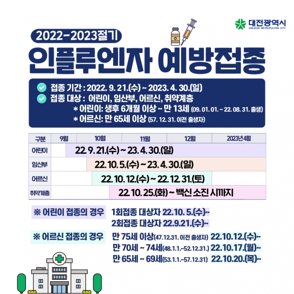 [Ytv영상스토리] 대전시는 오는 9월 21일 어린이를 시작으로 임신부, 만 65세 이상 어르신, 취약계층에 대한 인플루엔자 예방접종을 순차적으로 실시한다고 밝혔다.
