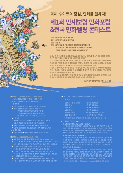 [Ytv영상스토리] 보령시는 오는 10월 15일 보령시청소년수련관 실내공연장에서 ‘제1회 만세보령 민화포럼’을 개최한다고 밝혔다.