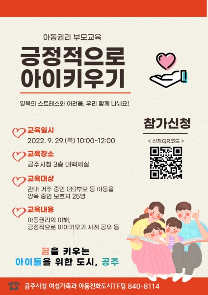 공주시, ‘긍정적으로 아이키우기’ 부모교육 참여자 모집