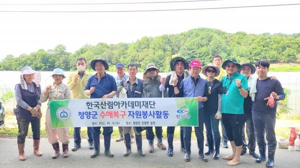 [Ytv영상스토리] 지난 14일 오전 10시부터 충남 청양군 장평면에서 한국산림아카데미 총동문회 회원 20여명이 8. 14 집중호우로 인한 큰 피해로 수해복구에 어려움을 겪고 있는 농가를 찾아 봉사활동을 펼쳤다.