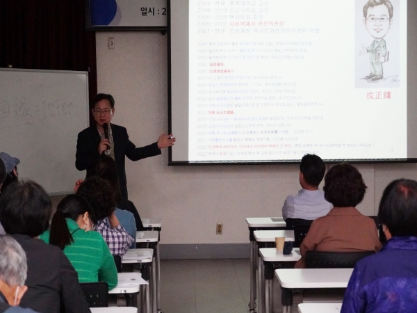 강좌에 앞서 마이크를 잡은 박 군수는 “우리 역사에서 유독 백제만 패망의 비애 속에서 비루하고 비겁한 모습으로만 그려져 있다는 점에 문제의식을 지니고 사비백제사 편찬사업을 시작했다”며 “어느 국가보다 유구하고 아름다운 역사문화를 간직한 백제의 진정한 모습을 새롭게 정립하고자 한 노력이 ‘신편 사비백제사’ 출간으로 그 결실을 맺었다”고 운을 뗐다.