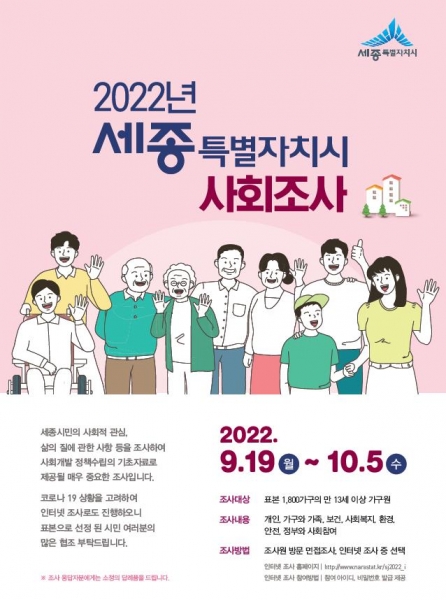 [Ytv영상스토리] 세종특별자치시가 오는 19일부터 10월 5일까지 세종시 표본 1,800가구를 대상으로 ‘세종특별자치시 사회조사’를 실시한다.