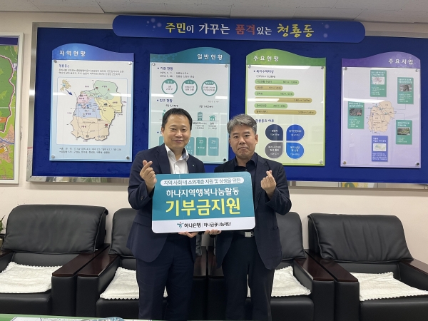 [Ytv영상스토리] 하나은행 천안중앙지점은 오는 17일 청수호수공원 일원에서 열리는 ‘2022 청룡 차없는거리축제’의 성공적 개최와 지역사회 발전을 위해 후원금을 청룡동에 기부했다.