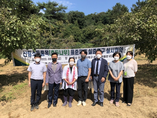 이번 협약에 따라 산림청과 천안시, 재배자는 호두나무 품종 개발을 위한 우수개체 지역 적응성 검정 재배 및 수확 후 관리기술 현장 실증 연구 세미나, 임업인 현장 교육 등 임업인, 귀산촌인의 소득 향상을 위한 상호협력을 약속했다.
