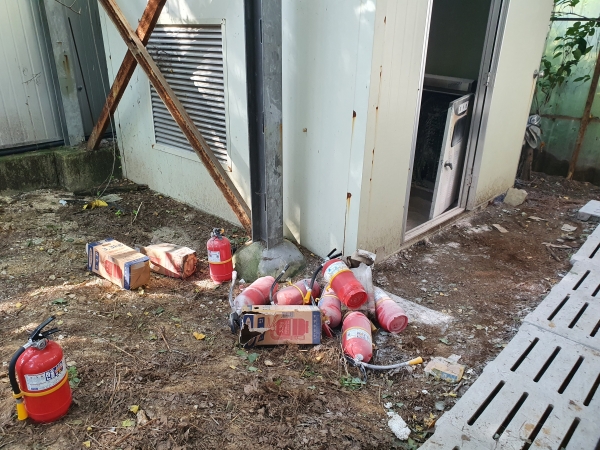 공용소화기함은 3.3㎏ 분말소화기 6대가 들어 있어 소방차량 접근이 어려운 장소에서 요긴하게 사용할 수 있다.