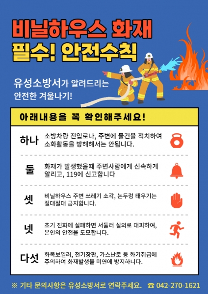 유성소방서 관계자는“화재발생 위험성이 높은 비닐하우스를 대상으로 신속한 대응체계를 구축해, 다가오는 겨울철 인명피해가 발생하지 않도록 최선의 노력을 다하겠다”고 말했다.