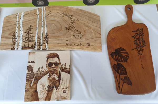 수강생들은 칼을 사용해 양각, 음각 등의 기법을 배우는 서각, 끌을 사용해 접시, 소반, 수저 등을 만드는 우드카빙, 책장, 테이블 등 생활 소품을 제작하는 DIY 등 다양한 목재작품을 출품했다.
