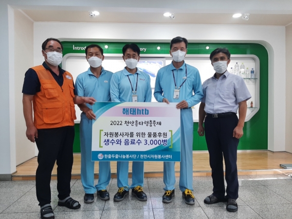 [Ytv영상스토리] 해태htb천안공장은 지난 20일 성공적인 2022 천안흥타령춤축제를 위해 구슬땀을 흘리는 자원봉사자를 위한 생수와 음료수 3,000병을 천안시자원봉사센터를 통해 천안시에 전달했다.