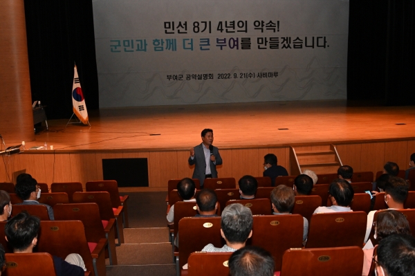 한편 부여군은 민선 8기 공약 사업 선정을 위해 지난 7월 농업회의소 회원 등 지역주민 159명을 대상으로 6일간 정책워크숍을 통해 군민 의견청취를 진행했다.