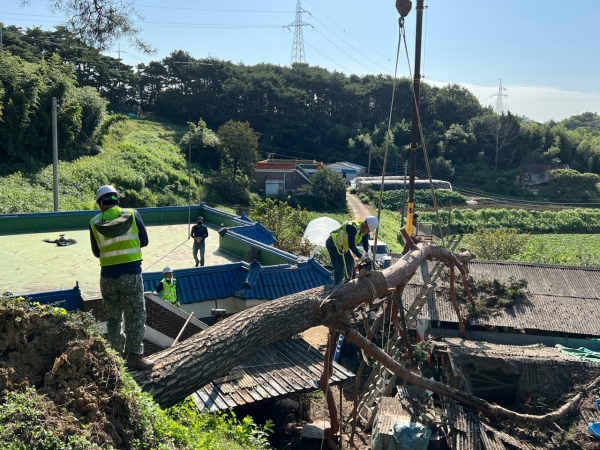 [Ytv영상스토리] 당진시 송산면 소재 민우개발가 중장비 2대, 인력 4명을 투입해 강풍으로 인해 송산면 부곡리 농가로 전도된 아름드리 소나무를 제거하는 등 봉사활동을 펼쳐 귀감이 되고 있다.