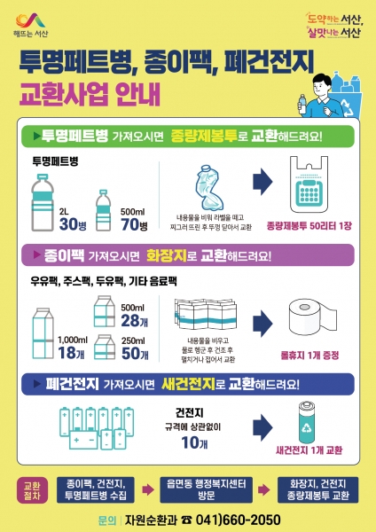 서산시, 투명페트병 가져오시면 종량제봉투로 바꿔드려요