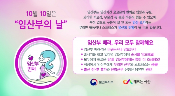 서산시, 10월 10일 ‘임산부의 날’ 임산부 배려 우리 모두 함께해요