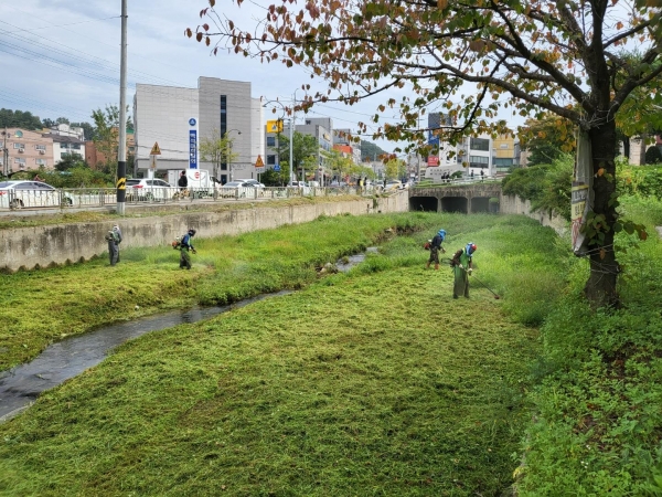 이번 제초작업은 신안동 주요 보행로 전 구간과 소하천에서 이뤄졌다.