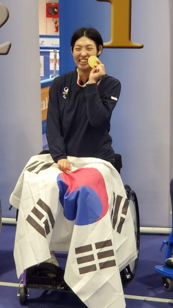 [Ytv영상스토리] 홍성군 장애인직장운동경기부의 휠체어펜싱팀 권효경 선수가 사상 첫 세계대회 금메달 사냥에 성공했다.