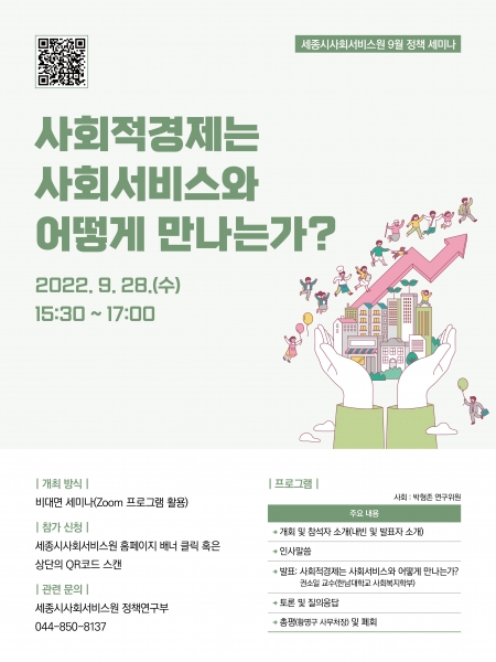 이와 관련해 세종시사회서비스원에서는 세종시에서의 사회적경제와 사회서비스의 융합과 발전을 위한 발표와 토론을 진행할 예정이다.