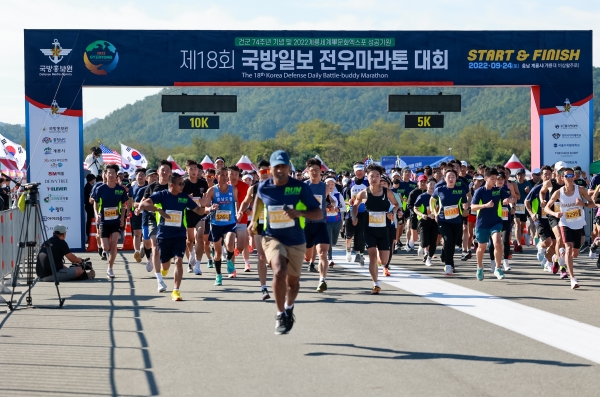 2003년 1회 대회를 시작으로 18회를 맞는 이번 대회는 5km, 10km 코스로 열렸으며 육·해·공·해병대 등 70여개 부대 장병을 비롯해 주한미군과 주한 외국무관단 및 민간 마라톤 동호인 등 300여명이 참가했다.