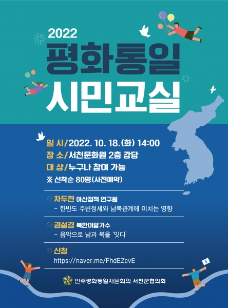 [Ytv영상스토리] 민주평화통일자문회의 서천군협의회는 10월 18일 오후 2시 서천문화원 2층 강당에서 ‘2022 평화통일 시민교실’을 개최한다.