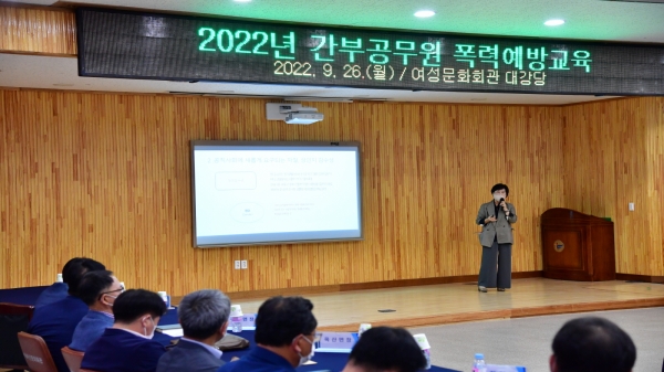 [Ytv영상스토리] 부여군이 지난 26일 5급 이상 관리자 공무원 45명에 대한 4대폭력 예방교육을 운영했다.