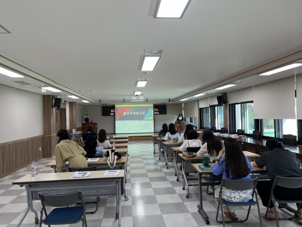 늘품:‘앞으로 나아가 좋게 발전한 품성’이라는 뜻으로 공동의 사고를 통해 함께 발전해 나가고자 함. 이번 연수에서는 초등 전문상담교사의 역량강화와 청렴교육을 위해 ‘초등 미술상담의 이해와 학교상담의 적용’을 주제로 드림발달심리상담연구소 김은지 소장이 강의를 실시했다.