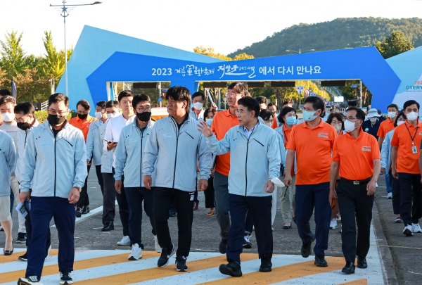 현장 점검에는 부시장을 비롯한 국·실장, 과장 및 산하기관장, 엑스포 국방부지원단 관계자, 조직위원회 각 본부장, 총감독, 각 부장 등 40여명이 참석했다.