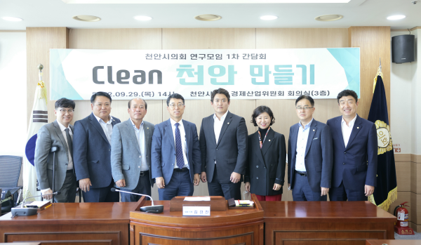 [Ytv영상스토리] 천안시의회 ‘Clean 천안 만들기 연구모임, 이종담, 육종영, 이종만, 노종관, 장혁, 이상구, 유수희)’은 29일 경제산업위원회 회의실에서 1차 간담회를 개최했다.