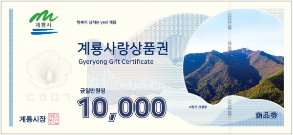 시에 따르면 현재 유통 중인 계룡사랑상품권은 조폐공사가 제공하는 공통 도안으로 변경 발행 예정인 계룡사랑상품권에는 계룡 9경 중 계룡산 천황봉과 사계고택 사진을 삽입해 지역 대표명소와 특색을 홍보할 계획으로 알려졌다.