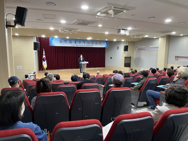 (사)대한숙박업중앙회 충남도지회가 주관한 이번 교육은 올해 코로나19 방역조치가 전면해제 되고 열린 집합교육으로 참석자들은 마스크 착용 등 코로나19 실내방역지침을 준수하며 진행됐다.