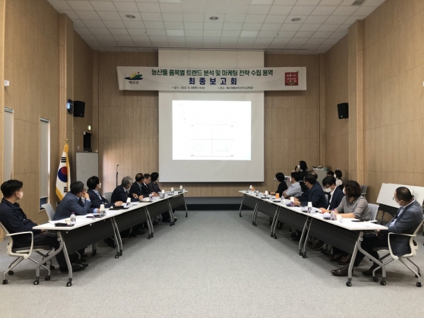 [Ytv영상스토리] 예산군은 지난 9월 29일 농특산물 유통·마케팅 활성화 사업 자문위원과 실무추진단 14명이 참석한 가운데 예산군 농특산물 공동브랜드인 ‘예가정성’의 브랜드 가치 제고를 위한 ‘농산물 품목별 트렌드 분석 및 마케팅 전략 수립 용역 최종보고회’를 개최했다.