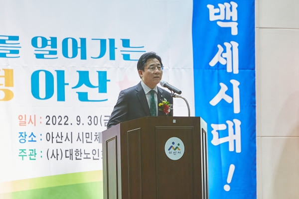 박경귀 시장은 어르신 한분 한분과 악수하며 인사를 건넨 뒤 축사를 통해 “여기 모인 어르신들은 대한민국과 충남도, 아산시 발전에 앞장선 분들로 존경받고 예우받아야 한다”며 “민선 8기 아산시는 효도 시정과 보훈 시정 추진을 위한 종합계획을 수립했다.