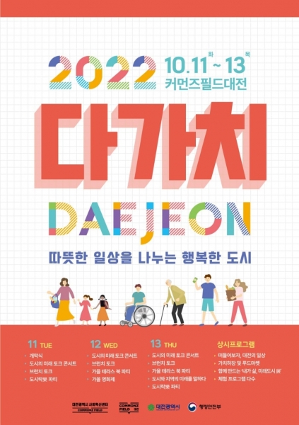 [Ytv영상스토리] 대전시는 오는 11일부터 13일까지 사흘간 옛 충남도청 내 커먼즈필드 대전에서‘2022년 다가치 대전’을 개최한다고 7일 밝혔다.