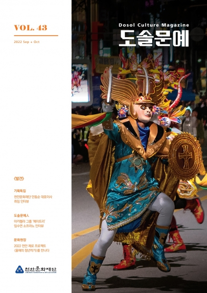 천안의 문화예술 콘텐츠 발굴 및 최신 문화예술 이슈를 전달하는 도솔문예 이번 43호는‘발견’이라는 키워드를 주제로 새로 취임한 안동순 대표이사의 인터뷰를 비롯해 시민과 함께 즐기는 다양한 문화예술의 현장을 집중 조명했다.