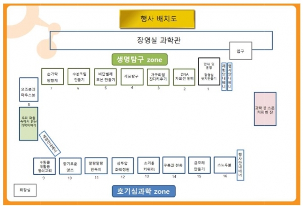 총 16종의 과학 체험 프로그램은 다양한 과학의 원리를 배우고 직접 체험할 수 있게 구성됐으며 대학생 서포터즈의 진로 체험 코너에서는 퀴즈 풀기, 과학 위인 레고 캐릭터 활용 색칠하기 등 다양한 지식 전달 활동을 체험할 수 있다.