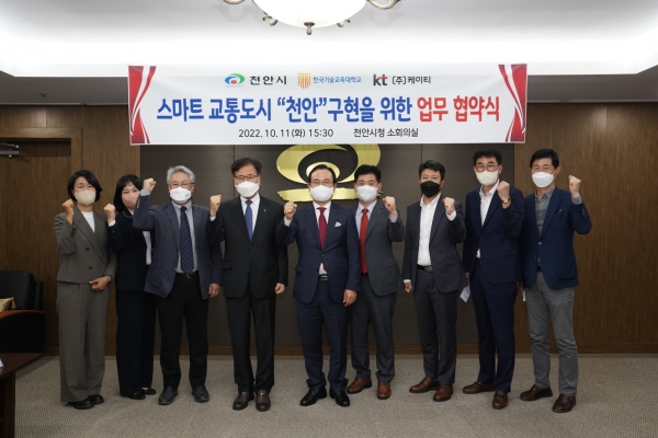 [Ytv영상스토리] 천안시는 지난 11일 시청 소회의실에서 한국기술교육대학교, 주식회사 케이티와 스마트 교통도시 구현을 위한 업무협약을 체결했다고 밝혔다.