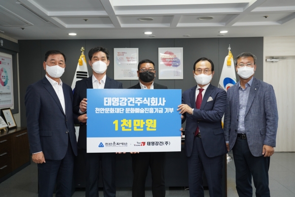 이날 시청에서 열린 전달식에는 박상돈 천안시장과 안동순 천안문화재단 대표이사, 안태하 태영강건 주식회사 대표, 황영식 태영강건 주식회사 전무이사가 참석했다.