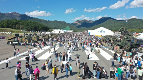 조직위 측은 개막 후 잦은 비와 강풍 등 궂은 날씨가 이어져 관람객 유치에 어려움을 겪을 것으로 예상했지만 한글날 대체휴일인 10일로 이어지는 연휴 기간 개막식을 비롯한 블랙이글스 에어쇼 군 장비 탑승 체험 육·해·공군의 날 행사 7개 전시관 등 다채로운 프로그램에 많은 관람객이 몰리면서 행사장에는 발길이 끊이지 않았다.