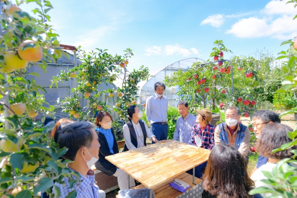 이러한 2D형 재배 방법을 활용한 김정도 대표는 3년간 연구 결과를 바탕으로 유실수 화분을 조경 시설물로 특허출원 중에 있으며 올해 도민참여 예산확보를 통해 2D형 사과나무 분화 200개와 2D형 천혜향 100개를 식재 벤치, 테이블, 파라솔 등 20여 가지 모양으로 만들어 활용 가치를 높이고 있다.