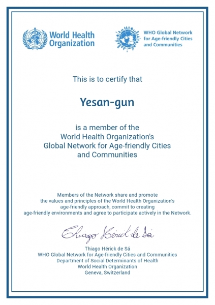 [Ytv영상스토리] 예산군은 세계보건기구로부터 고령친화도시로 인증을 받았다고 17일 밝혔다.
