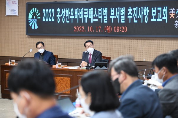 [Ytv영상스토리] 홍성군은 오는 11월 5일부터 11월 6일까지 2일간 홍주읍성 일원에서 열리는‘2022 홍성한우바비큐페스티벌’의 성공적 개최를 위해 ‘홍성한우바비큐페스티벌 부서별 추진상황 보고회’를 지난 17일 개최했다.