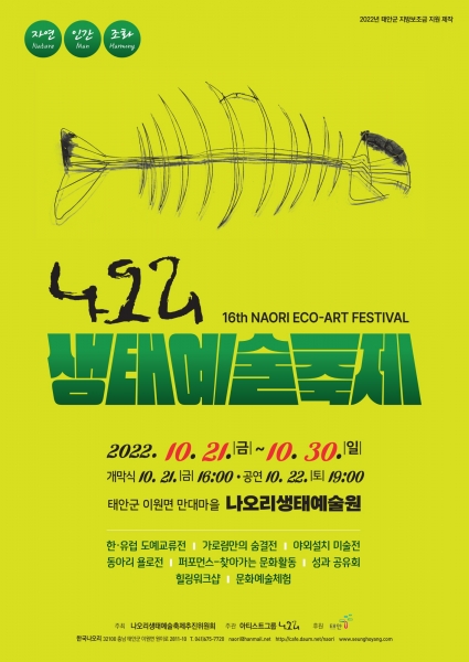 도예·무용·야외설치미술이 융합된 나오리 생태예술축제는 나오리생태예술축제 추진위원회가 주최하고 태안군이 후원하는 행사로 주민들에게 문화 향유 기회를 제공하고 관광객들에게는 아름다운 자연과 예술의 조화를 선사할 예정이다.