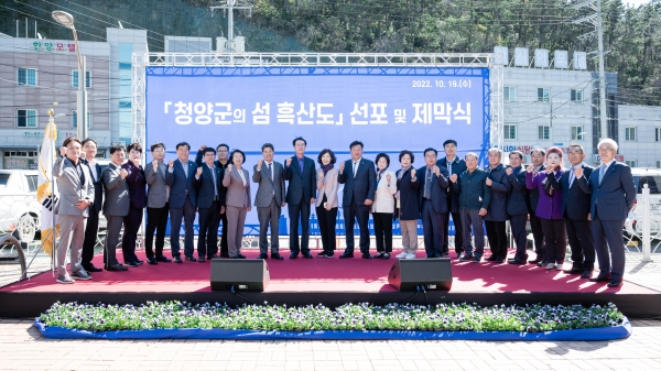 [Ytv영상스토리] 지난 2월 전남 신안군과 자매의 인연을 맺으면서 흑산도에 대한 ‘청양군 명예 섬’ 부여 업무협약을 체결한 청양군이 지난 19일 표지석을 세우고 제막식을 열었다.