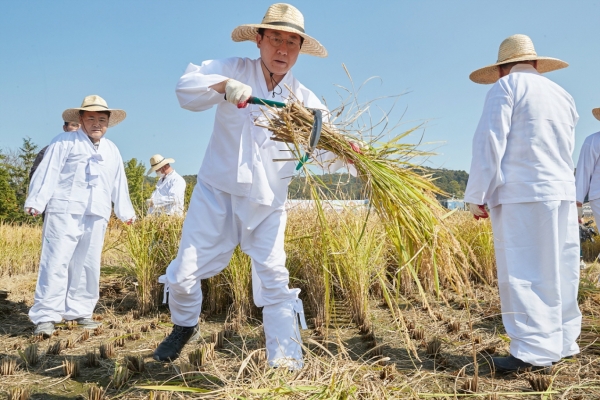 아산시 ‘에코 농 파크’ 예정지서 ‘전통 벼 베기’ 행사 열려